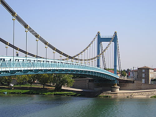 Pont suspendu sur le Rhône: "le beau pont bleu sur le beau Rhône".