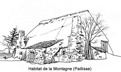 • la maison de granit se trouve sur le plateau là où la forêt a laissé sa place aux pâturages pour les ovins. La maison est ici adaptée à la vie en altitude, elle est plus basse et plus massive. Les toits sont couverts de lauzes de michaschistes